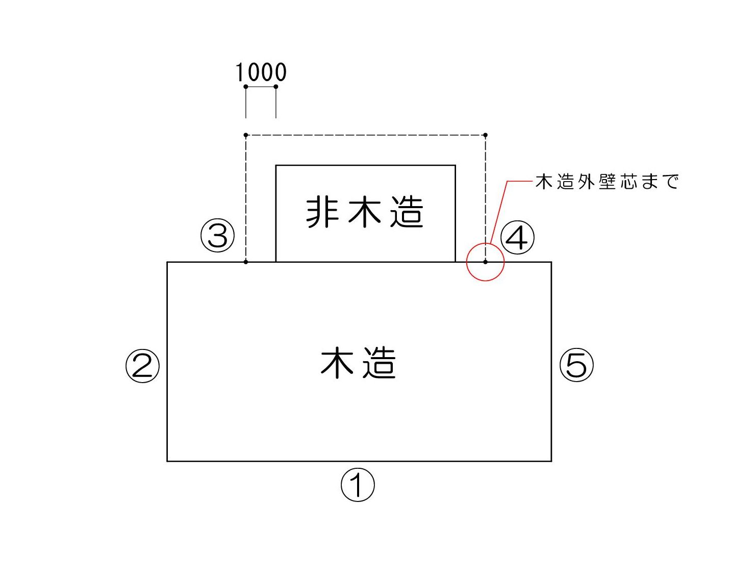 基準要領において、非木造は基本外壁芯から1m出す規定はありますが、木造にはありません。